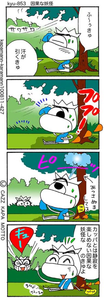 カパの性2025年9月12日 もう夏も終わり(終わりだよね?最も熱い夏)秋の香りや音を楽しみながら、人はしみじみしたいもの?しかし!カッパはそんなの無理〜無理無理むり〜っというわけでござんす。うるさくても許してね? カッパ漫画