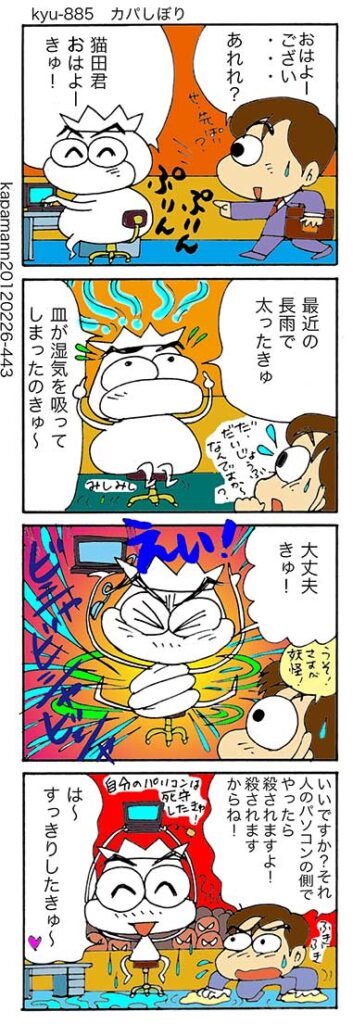湿気、困りますよね〜でも乾燥も嫌。人たるものはわがままです。カパの方はあるがままに楽しく生活しているみたいで羨ましい・・・?
